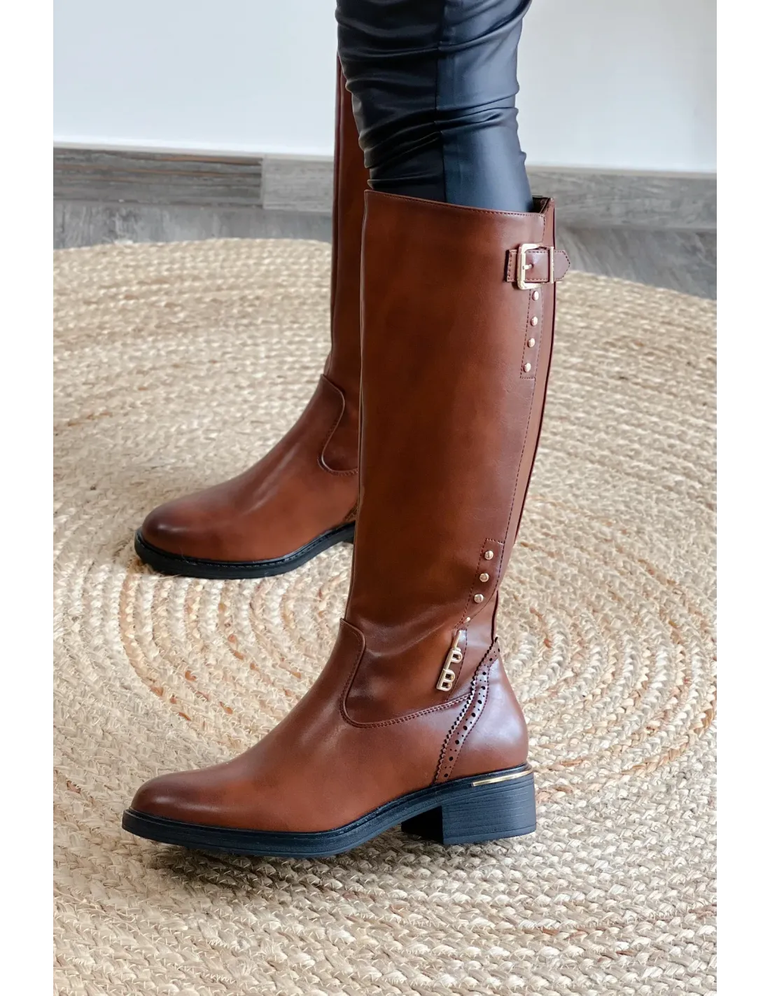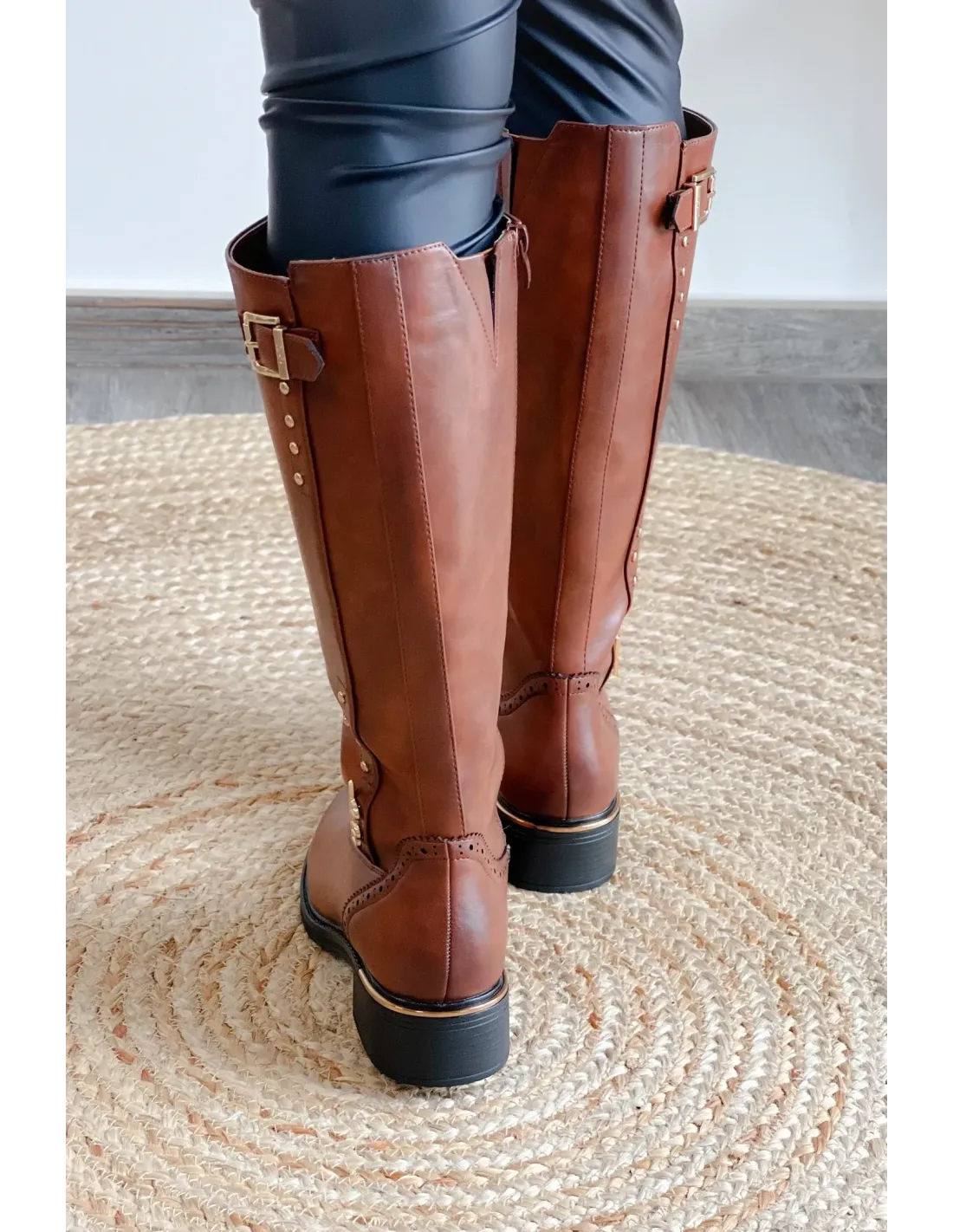 Bottes fermeture éclaire sur l'intérieur, boucles et rivets doré