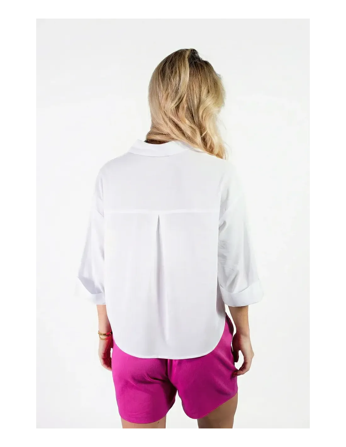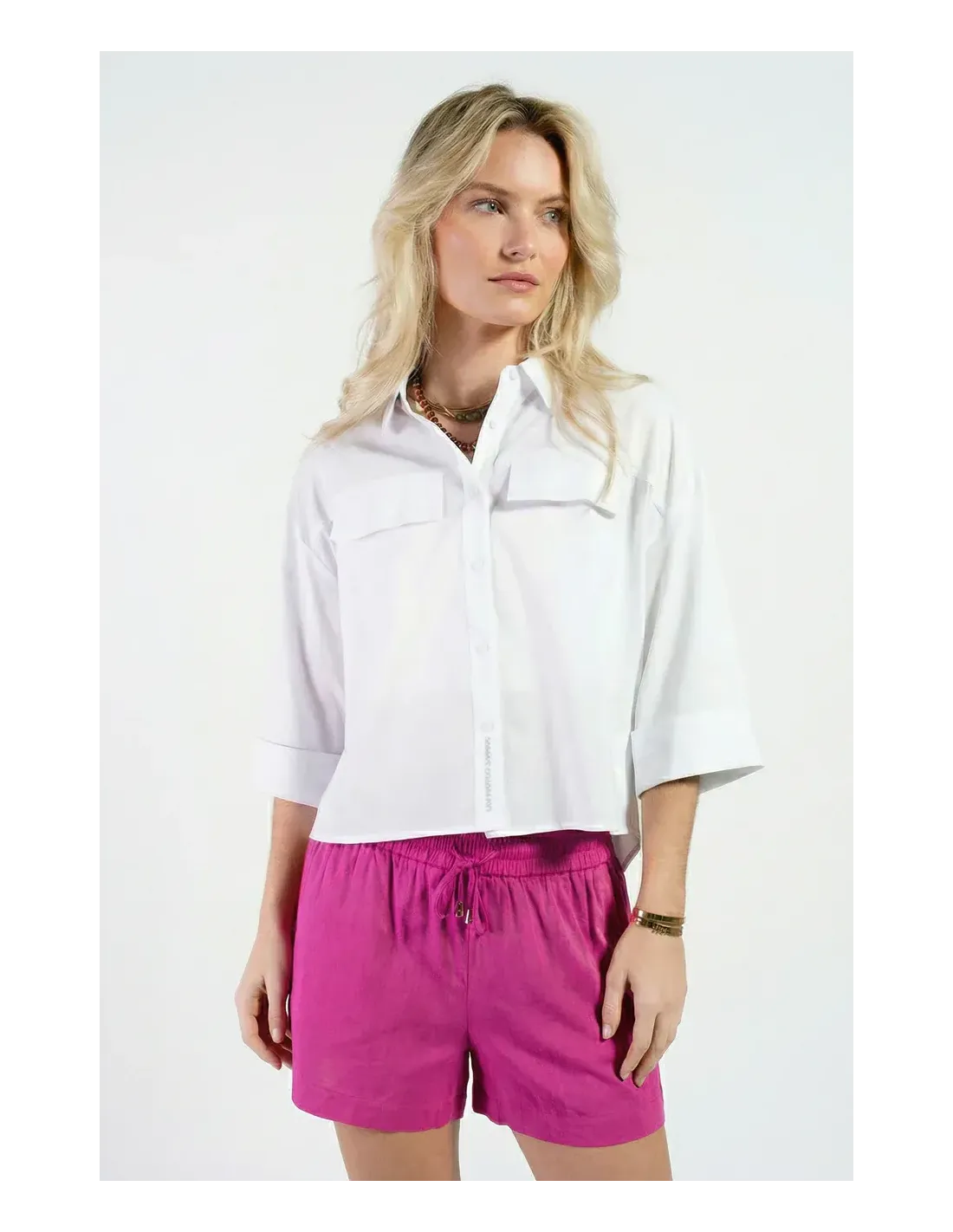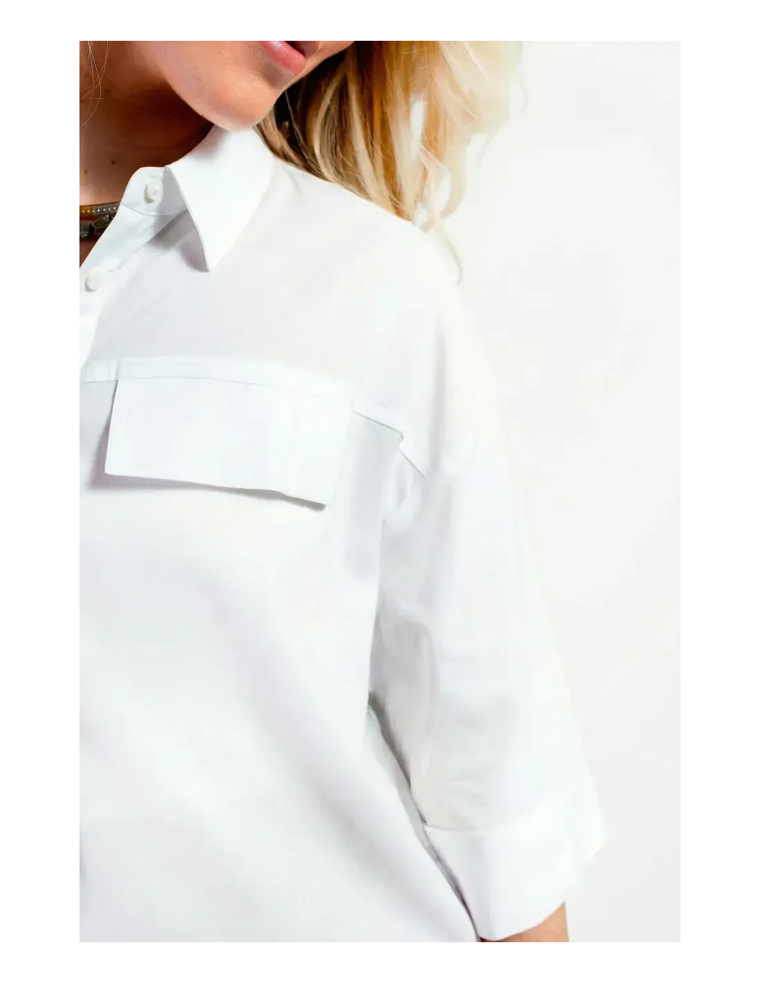 Chemise manches 3/4 retroussées, poches plaquées, coupe over size.