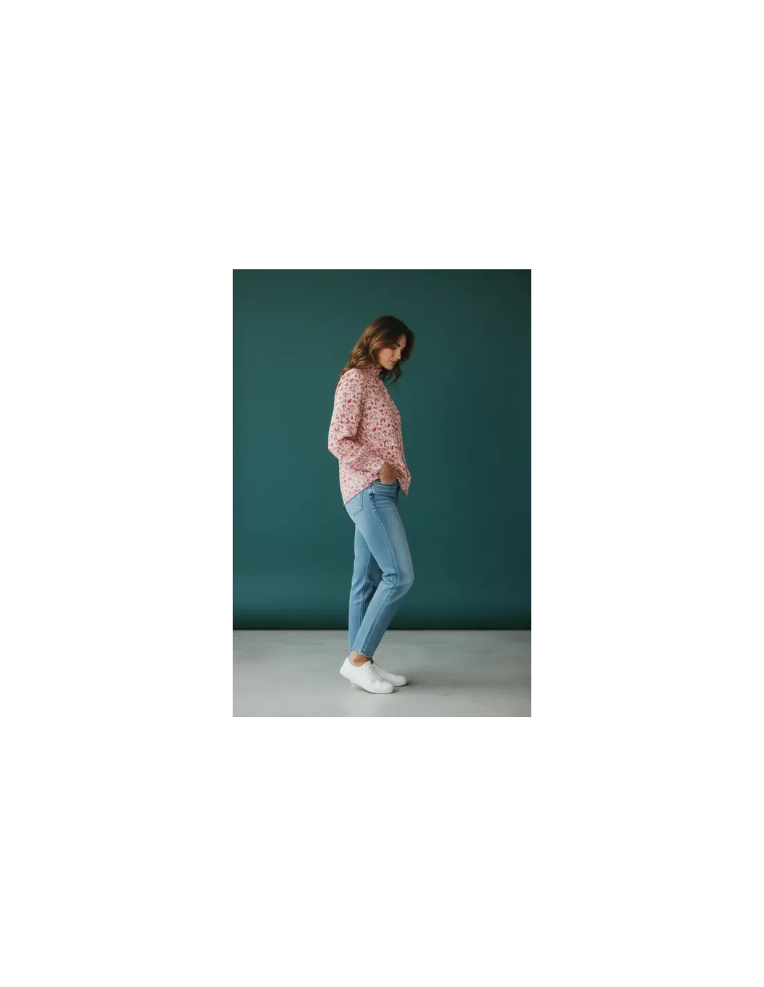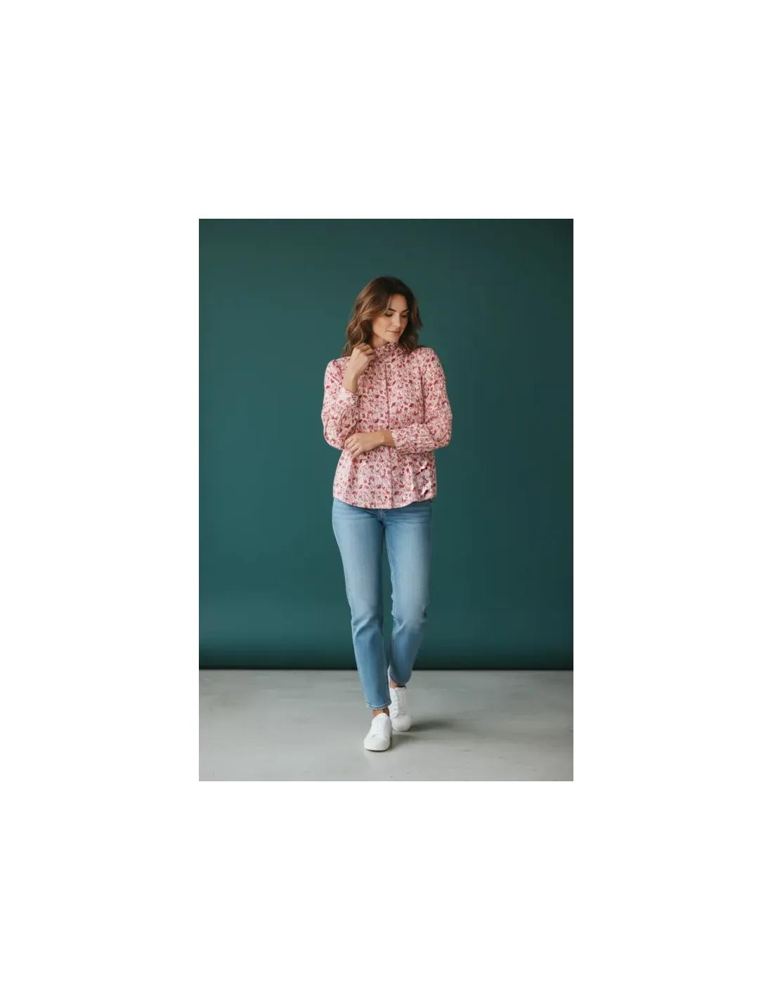 Chemise fleurie manches longues , col victorien, esprit romantique chic .Coupe droite et fluide.