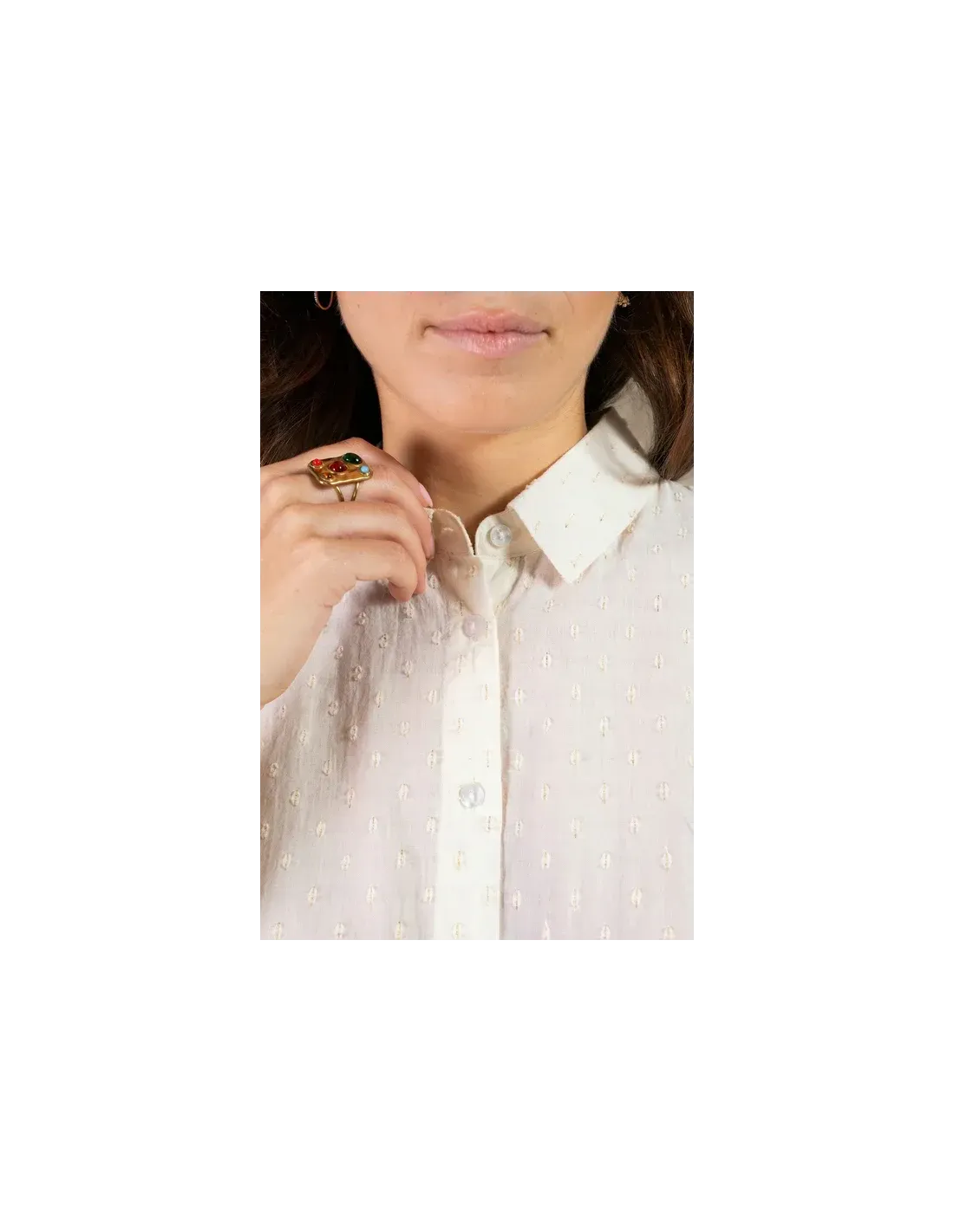 Chemise sans manches, plumetis doré.