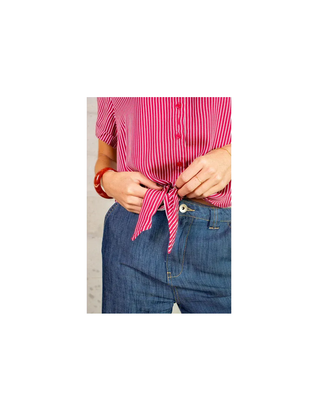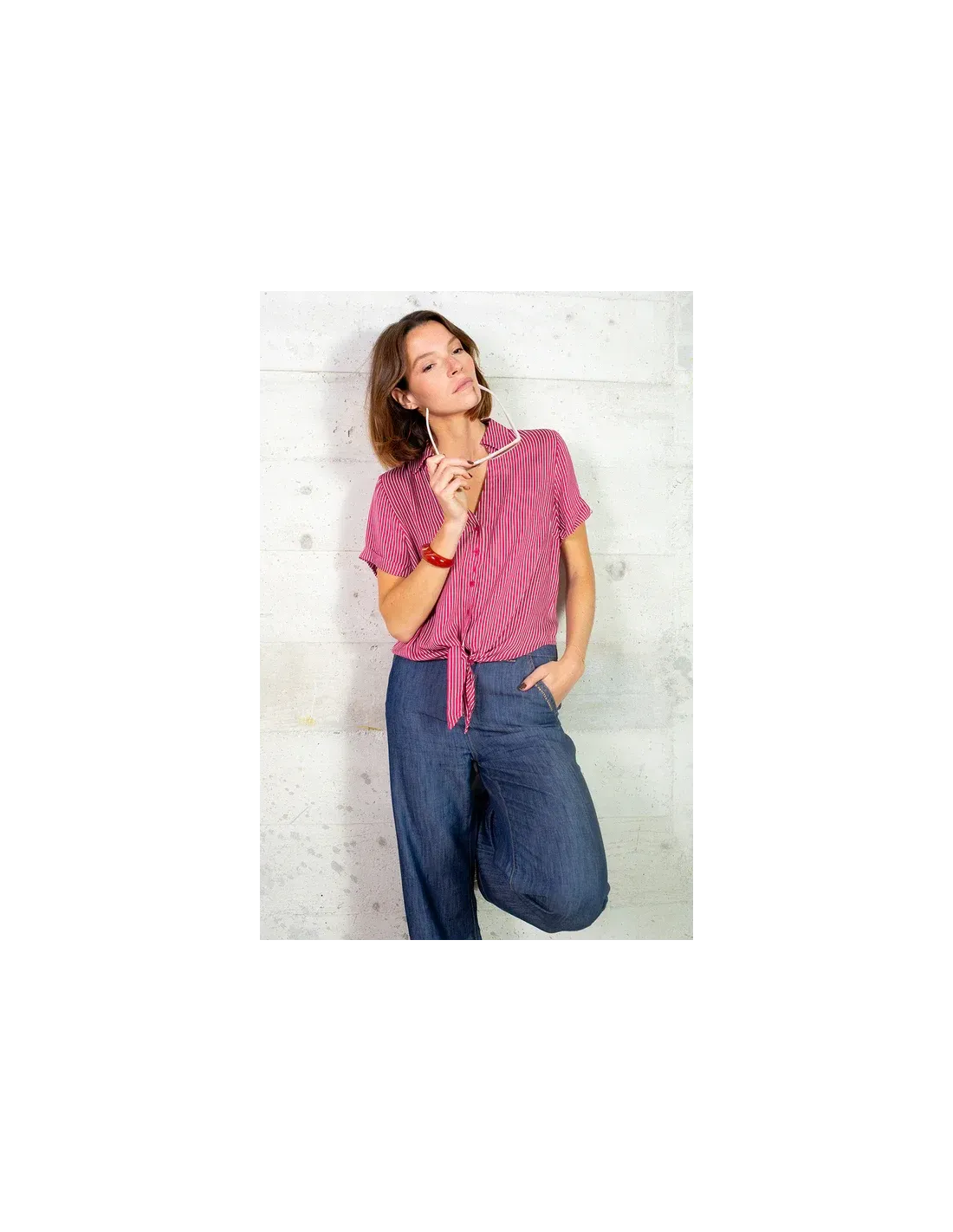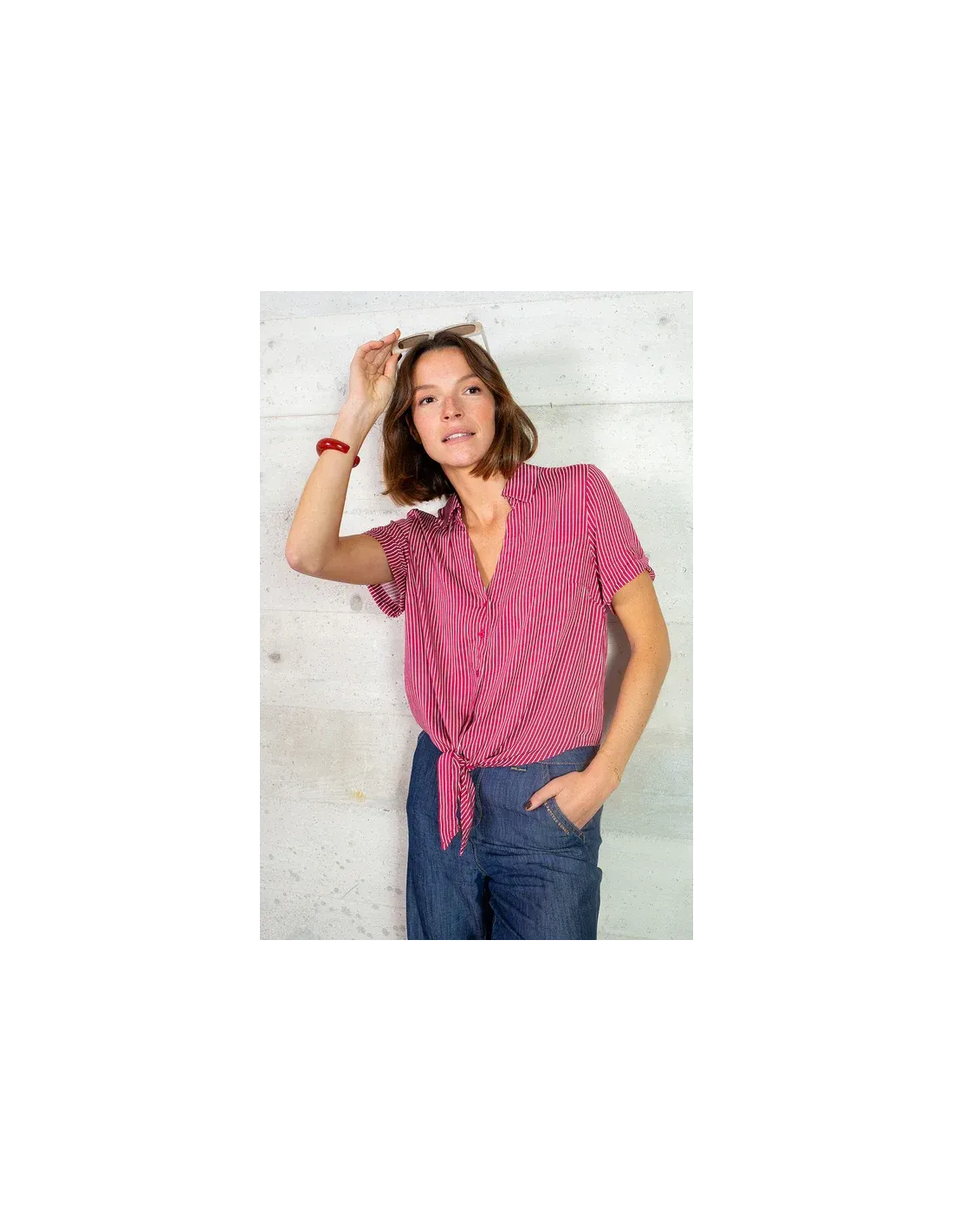 Chemise manches courtes à rayures.