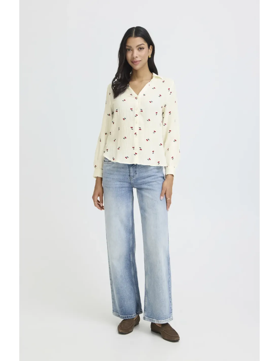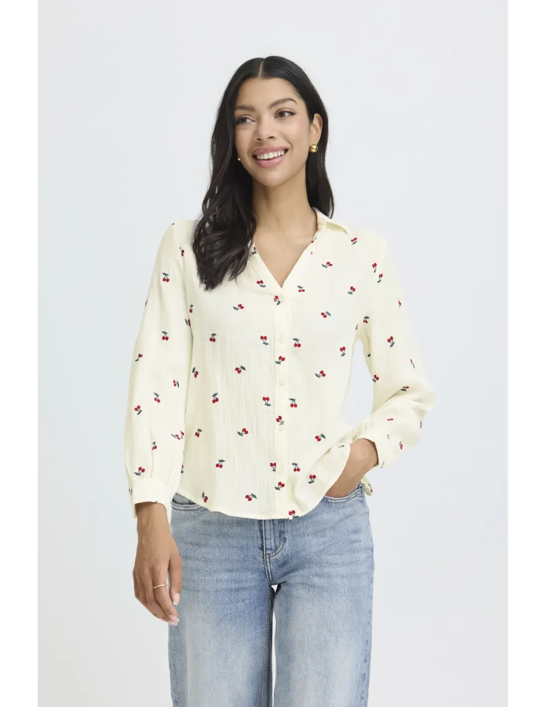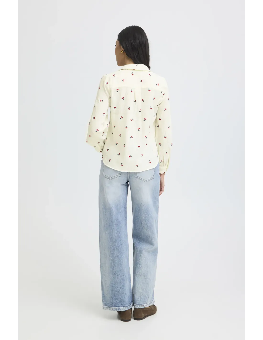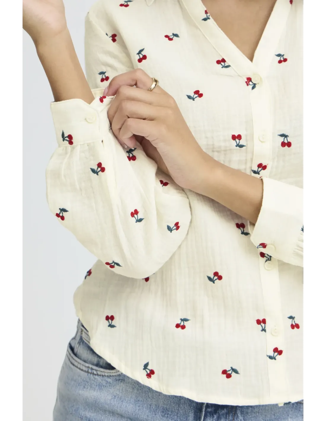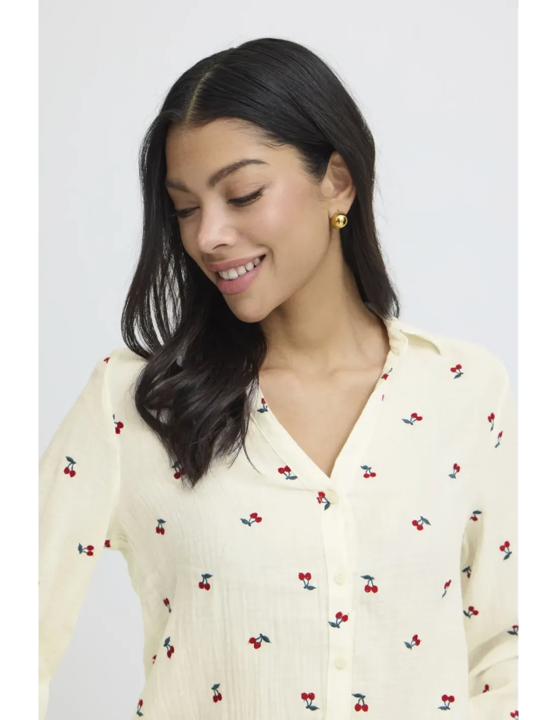 Chemise en gaze de coton brodée cerises