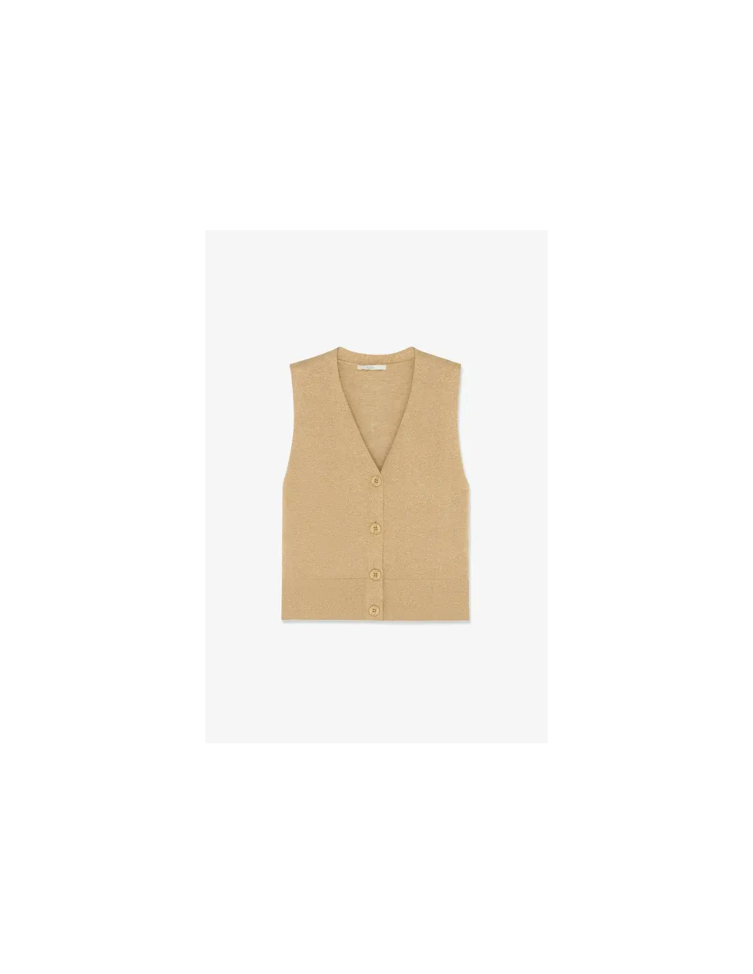 Gilet sans manches, encolure V, fermeture 4 boutons.