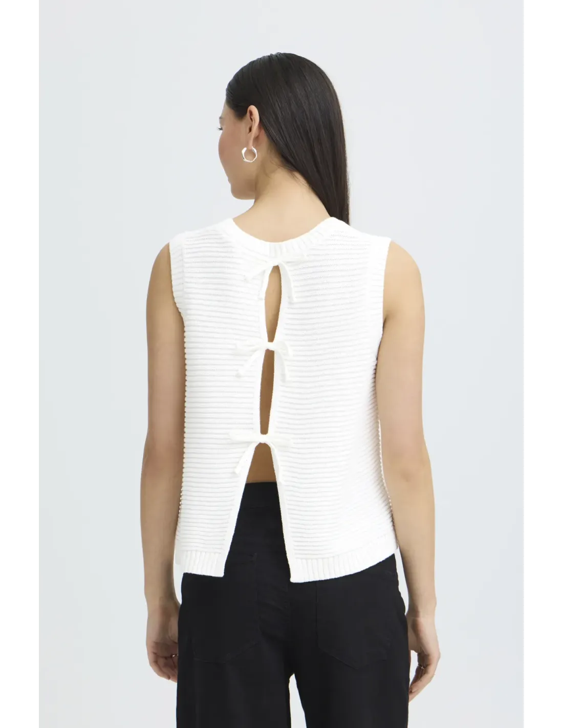 Gilet sans manches, maille. Ouvert dans le dos avec petits noeuds.