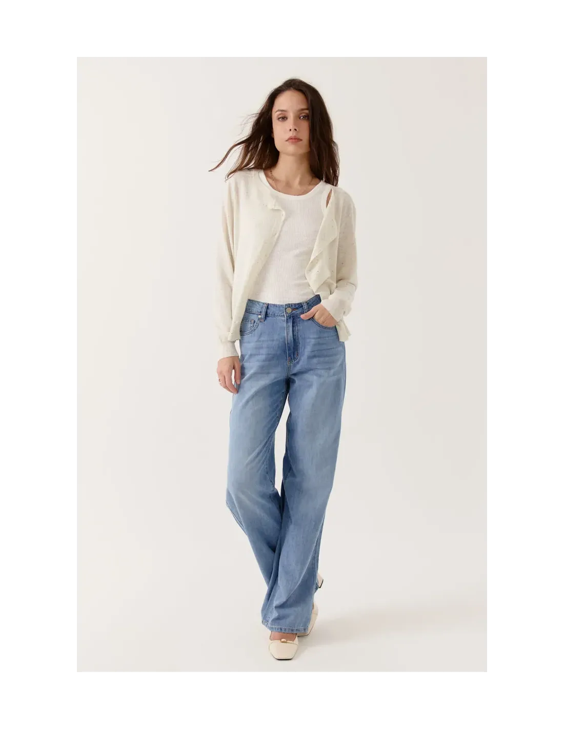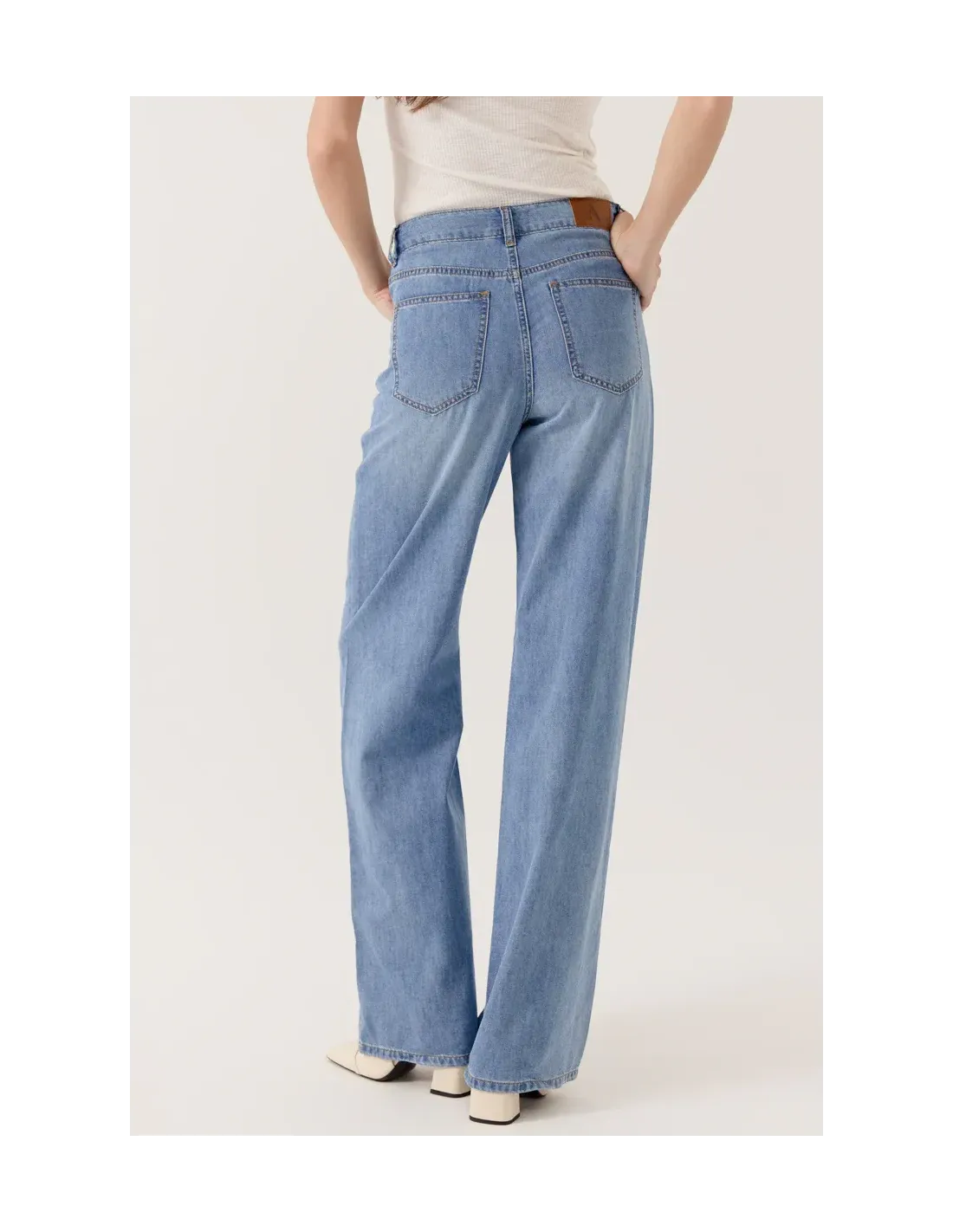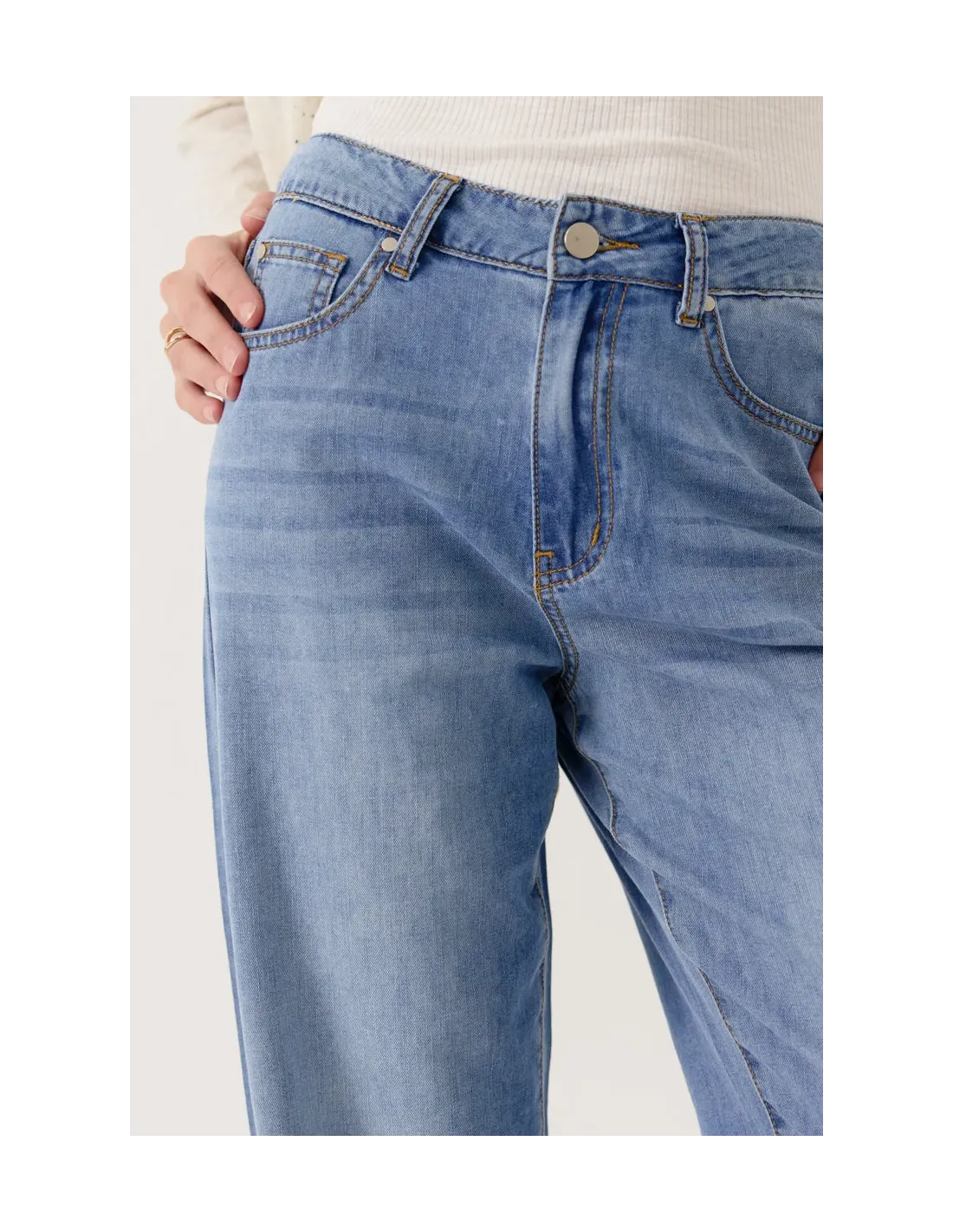 Jean taille haute.Coupe droite légèrement ample.