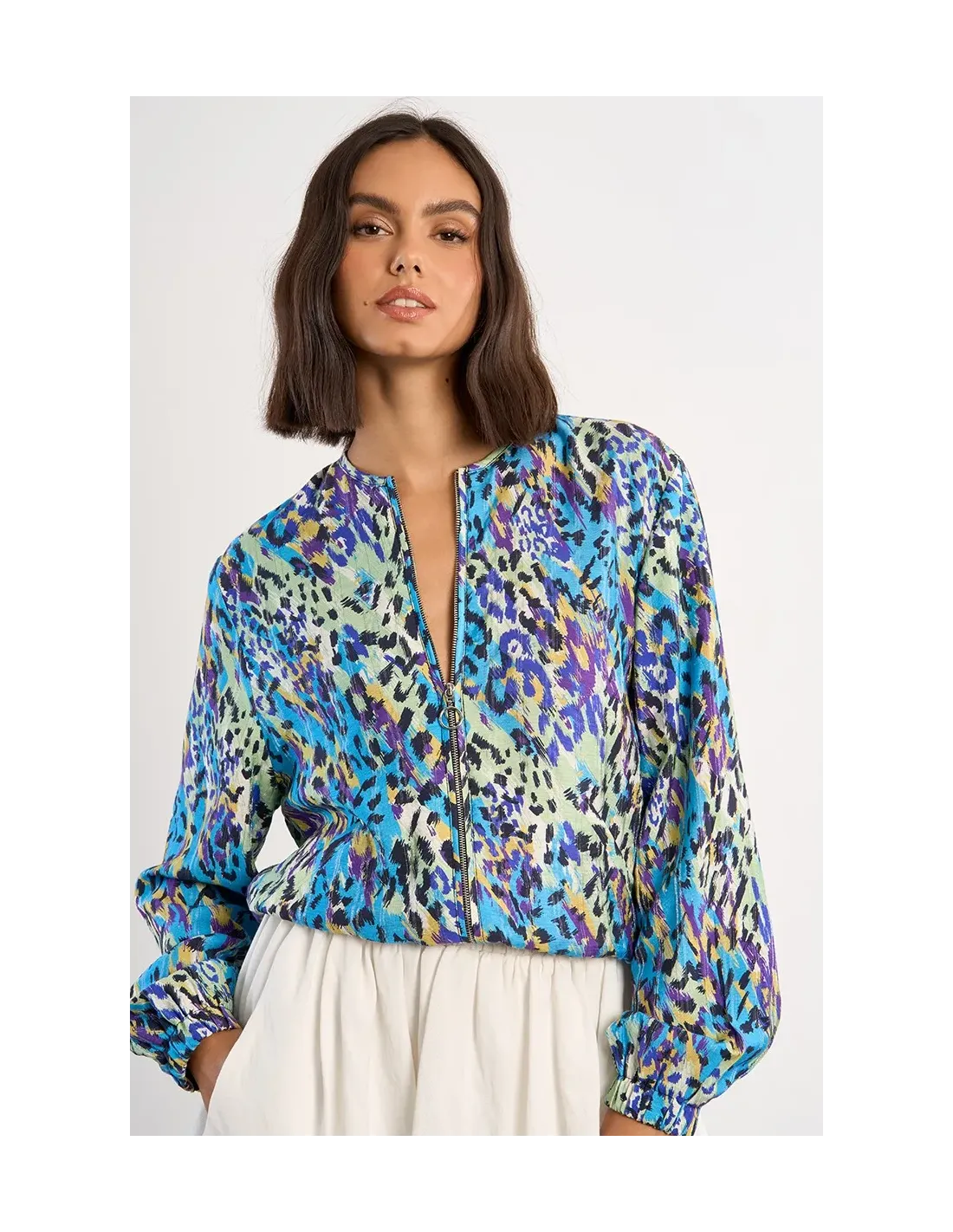 Bomber décontracté à imprimé. Manches longues.Col rond. fermeture Zip. Elastiqué aux poignets et hanches.