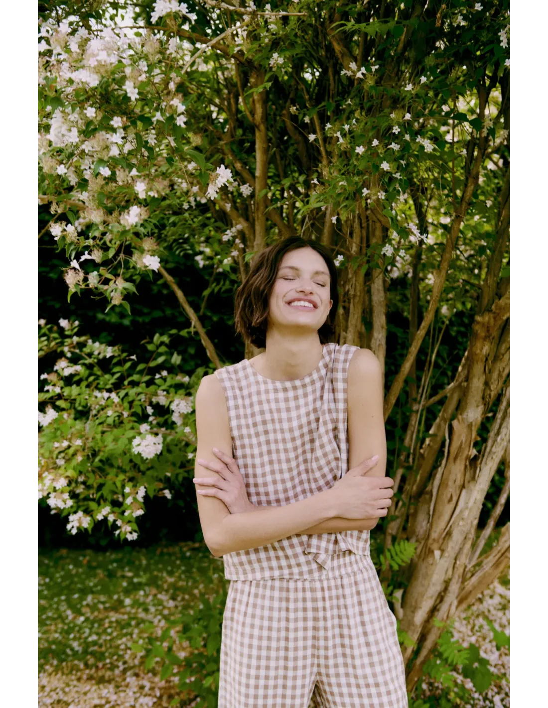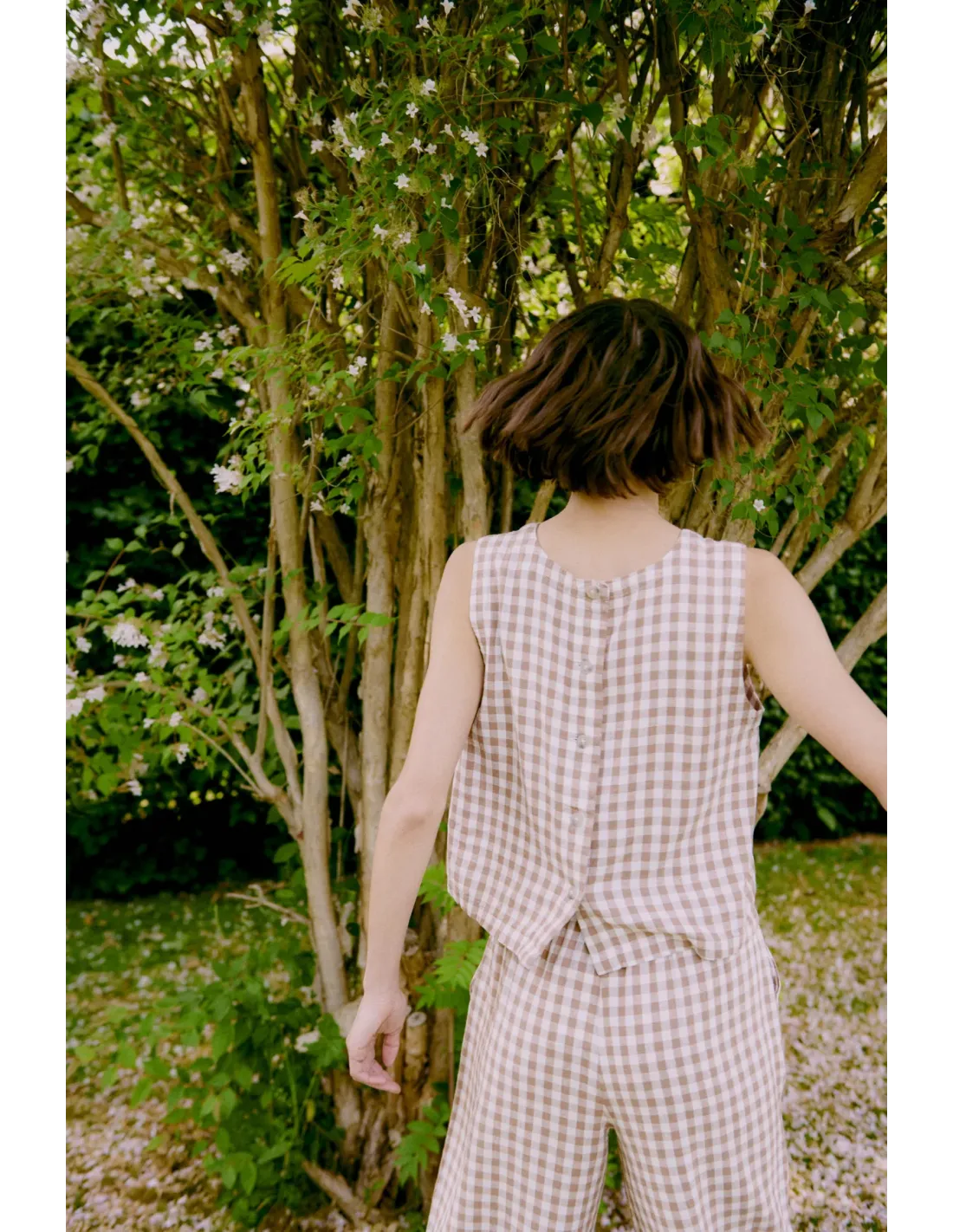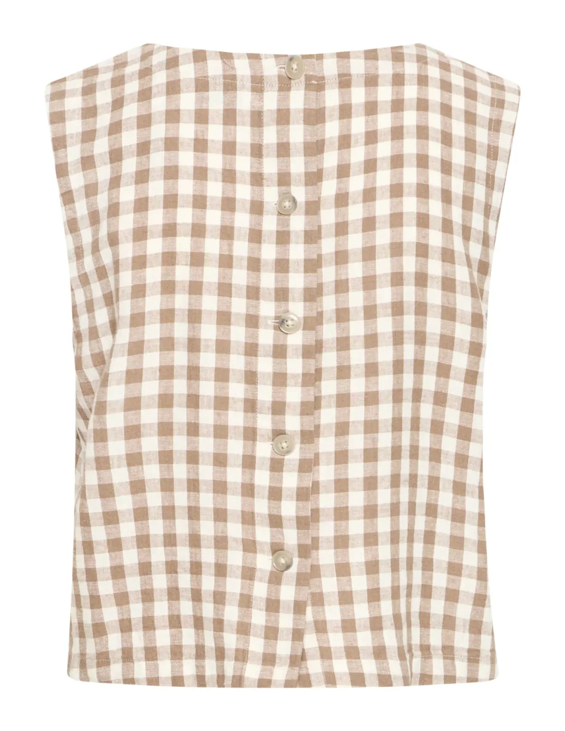 Top sans manches, encolure ronde, boutonnage dans le dos.