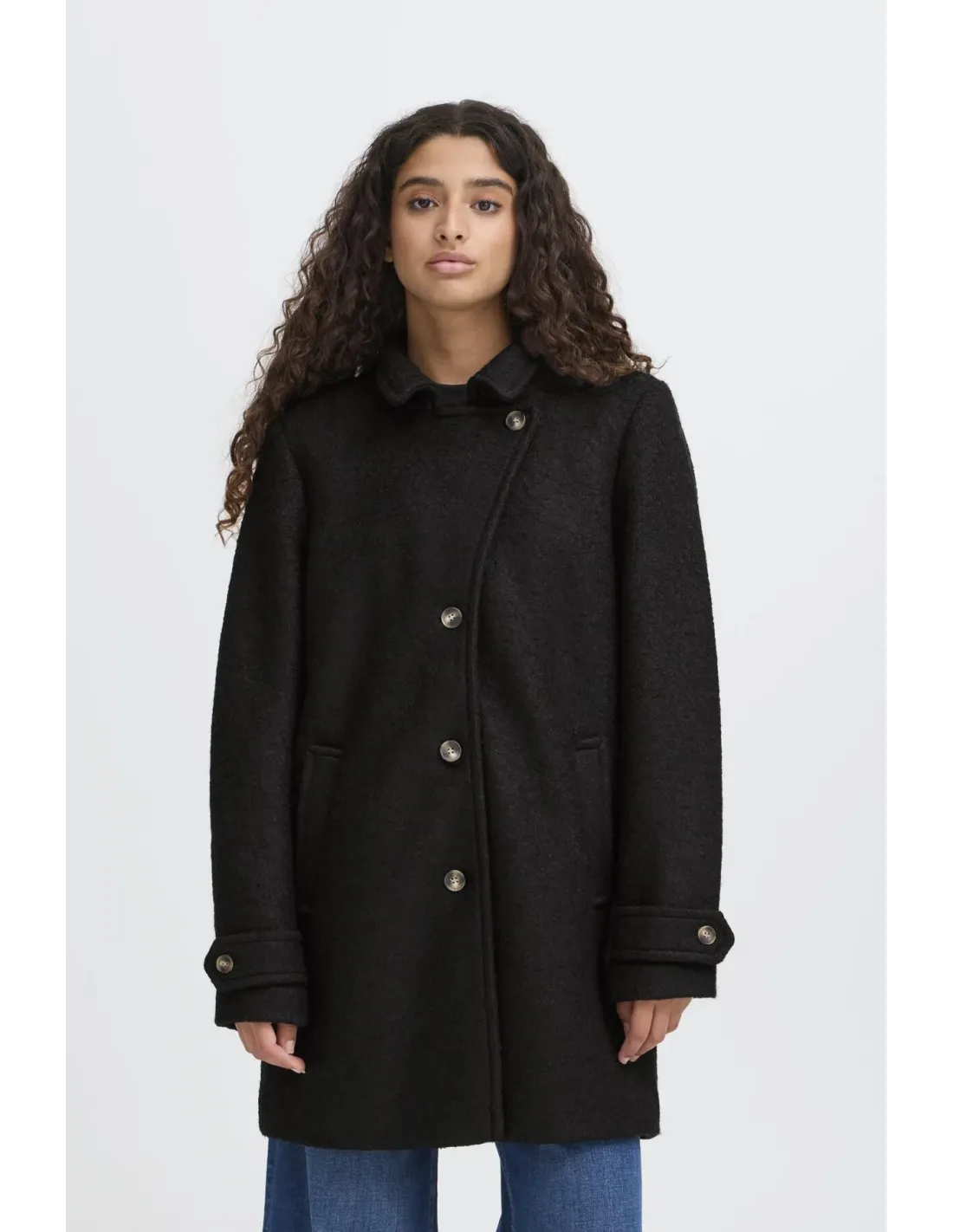 Manteau 3/4, fermeture boutons . Coupe droite