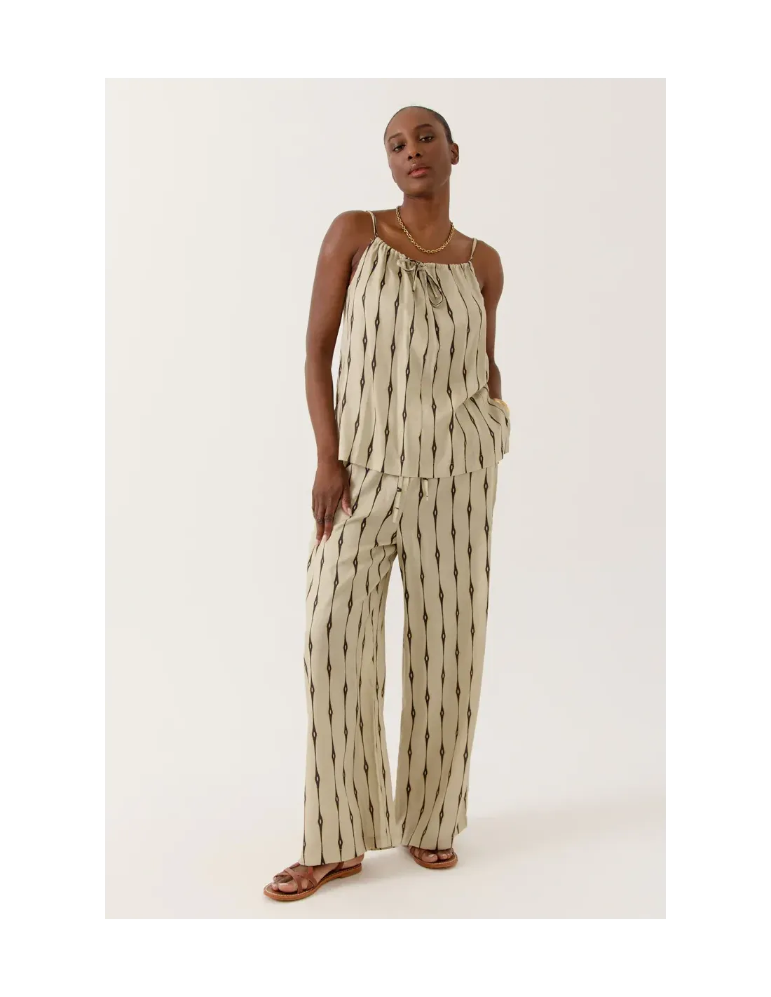 Pantalon large à imprimé graphique. Taille élastiquée avec lien de serrage.