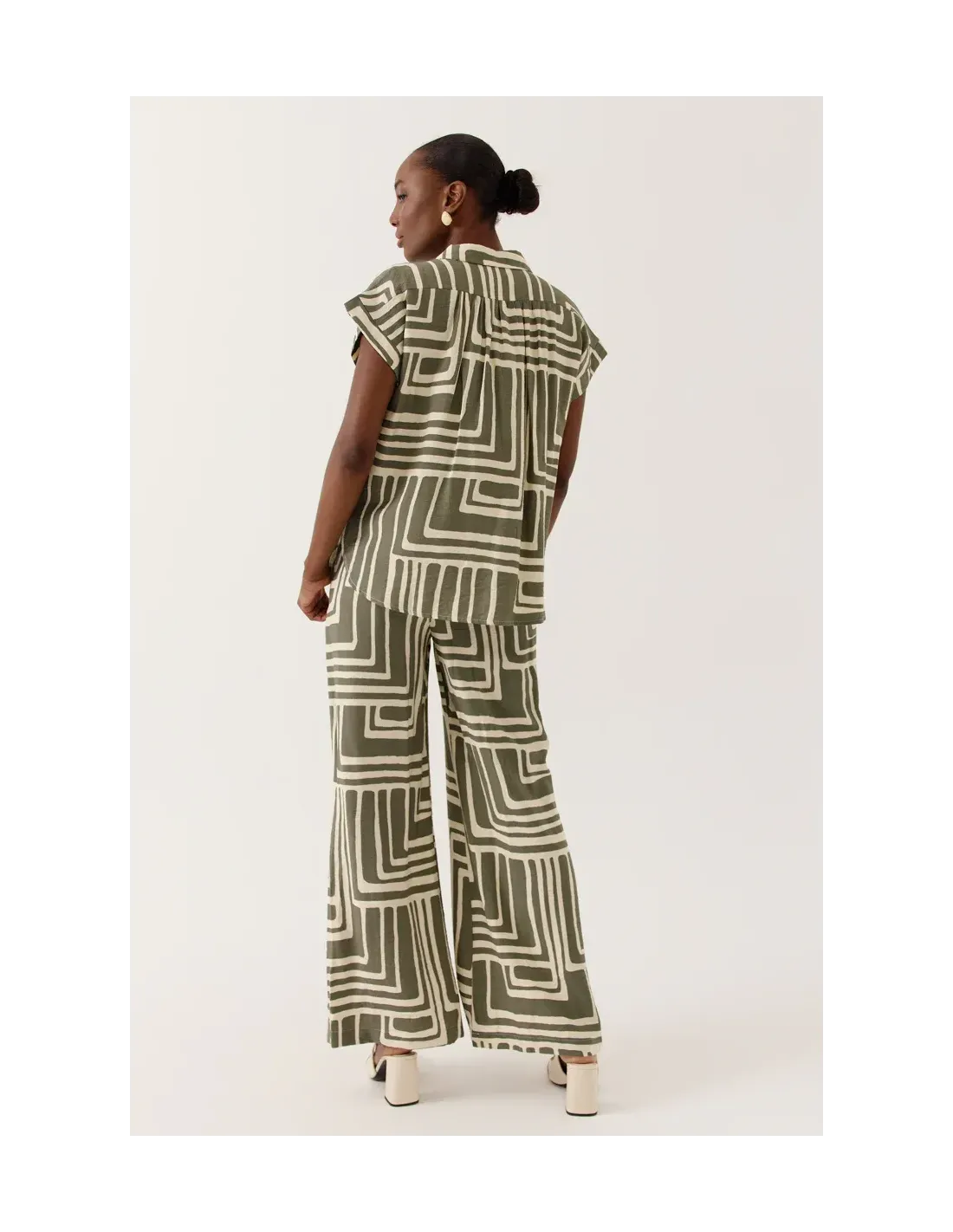 Pantalon large à imprimé graphique.Taille haute avec ceinture structurée.