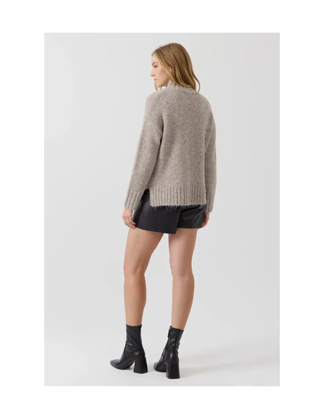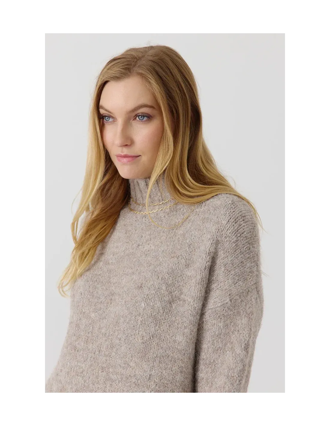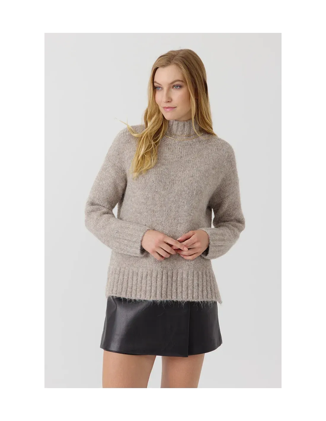 Pull en manches longues, col montant. Coupe droite et finitions cotelèes.