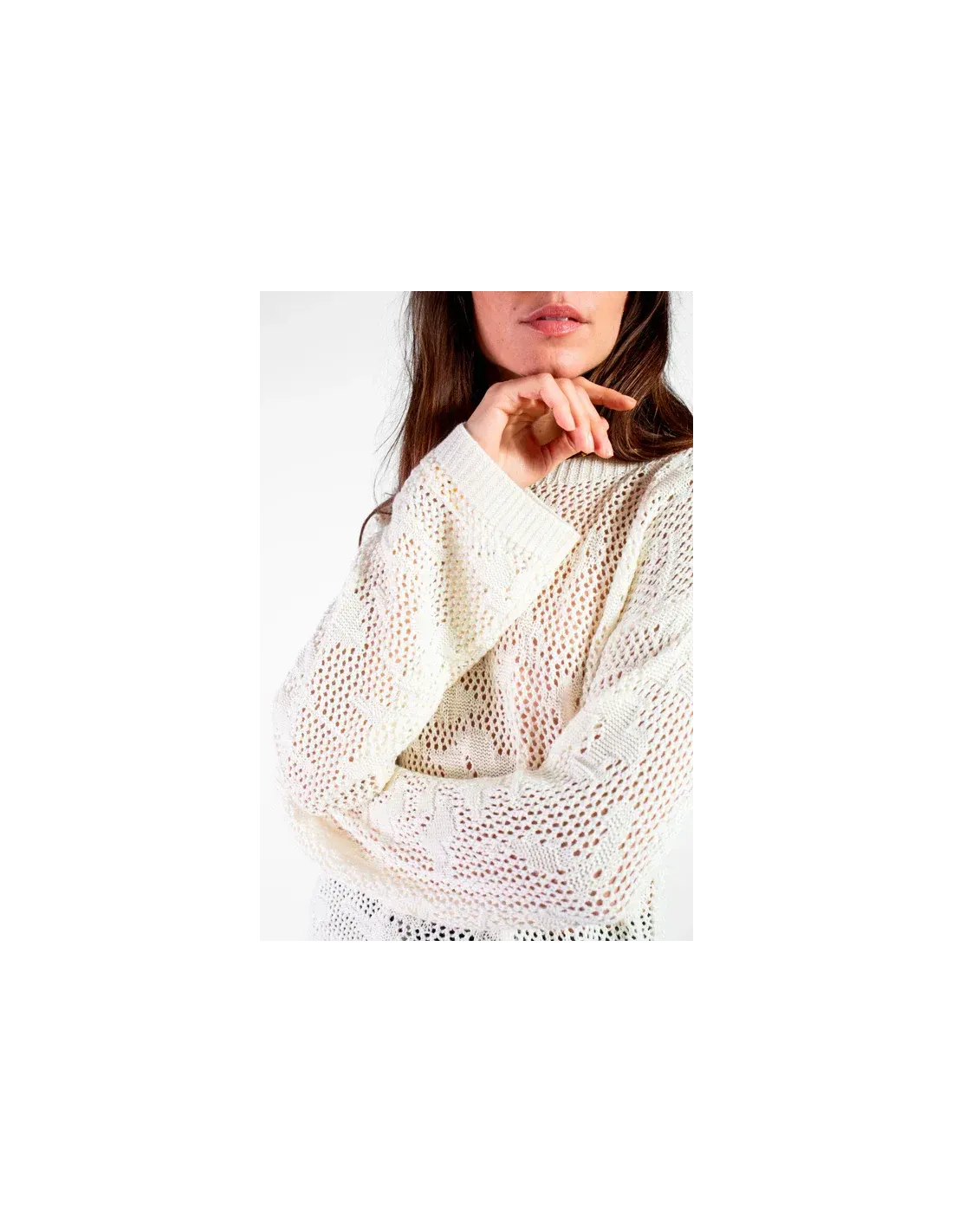 Pull crochet manches longues, encolure ronde.
