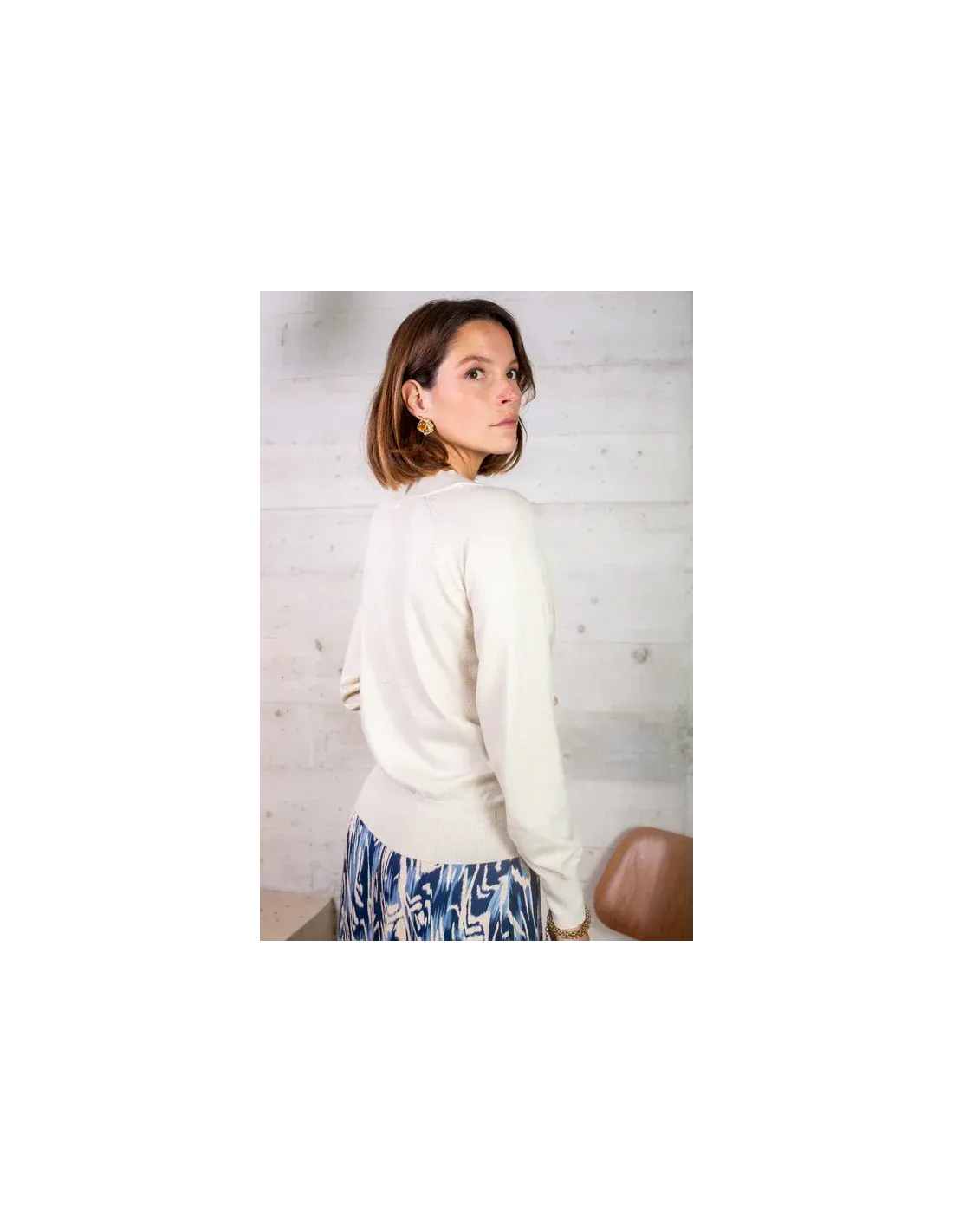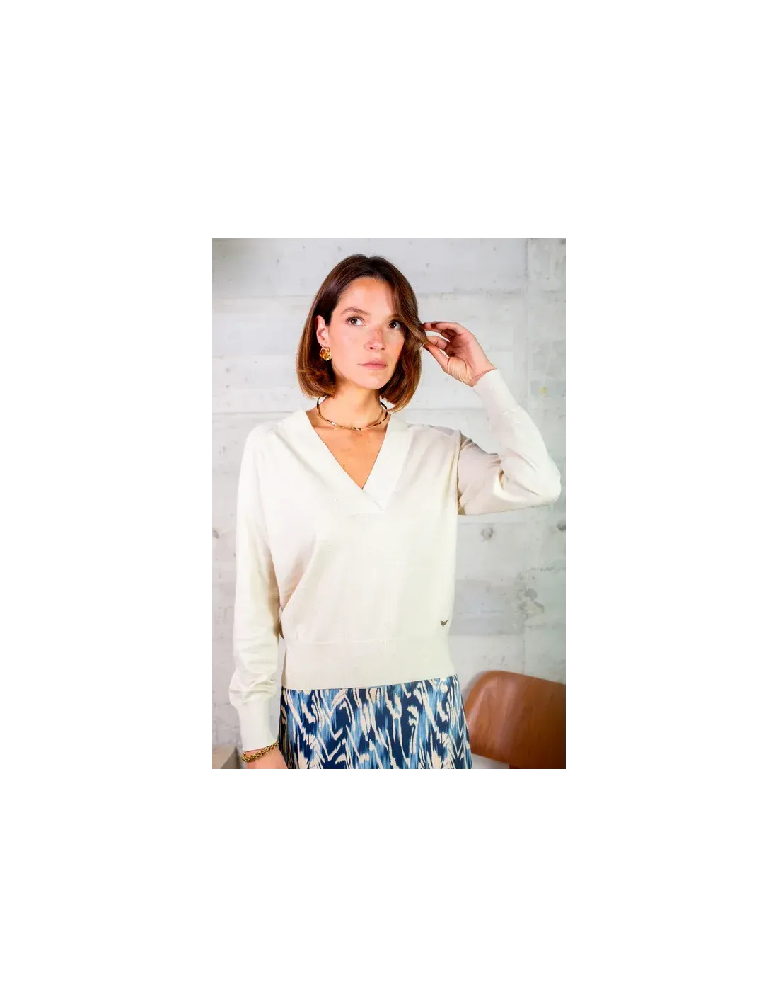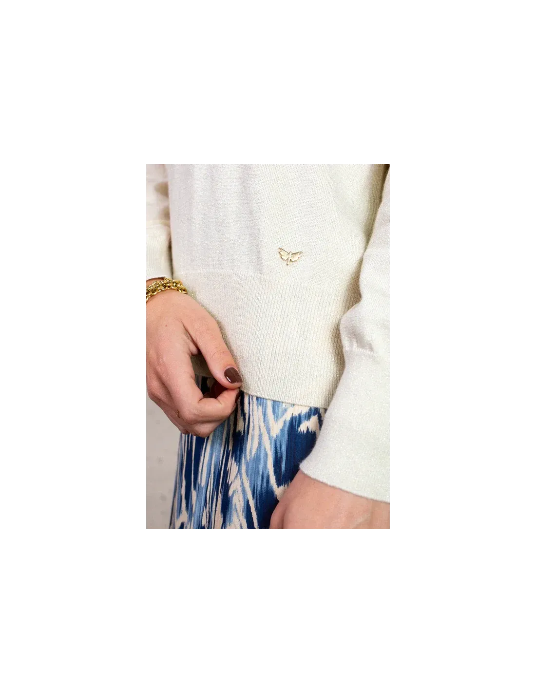 Pull manches logues, encolure V, finitions cotelées. Scintillant et discret.
