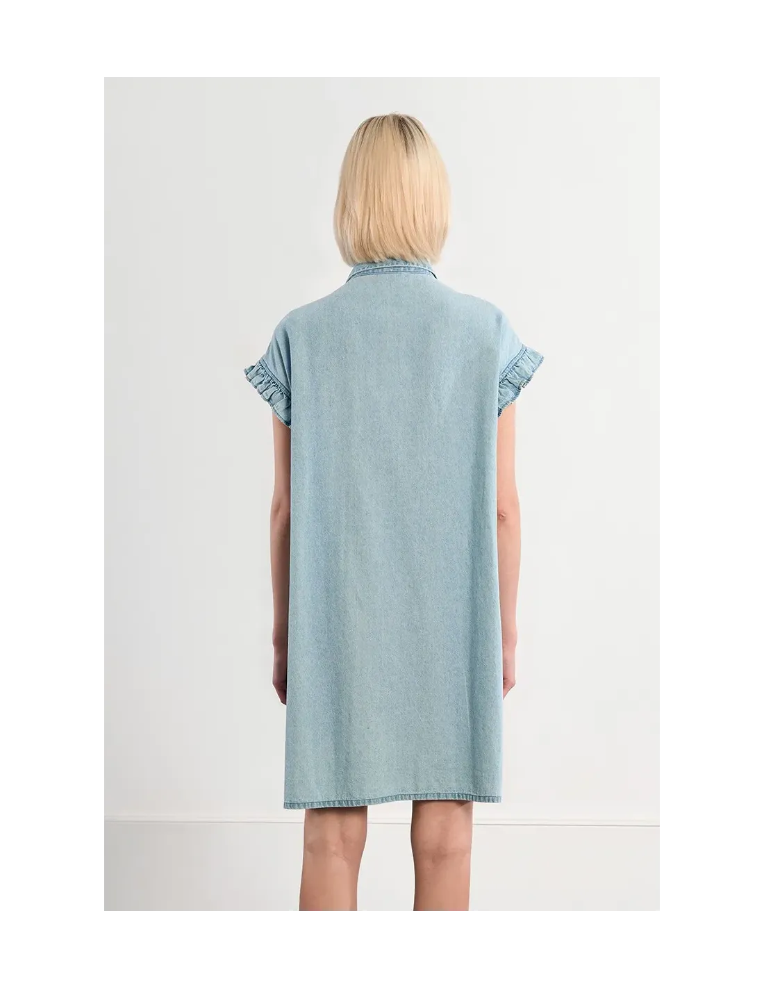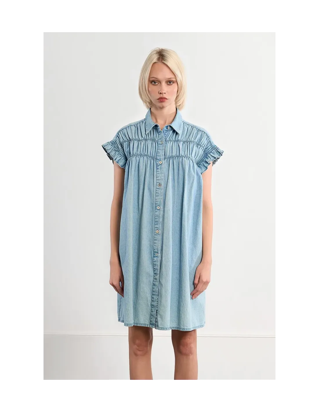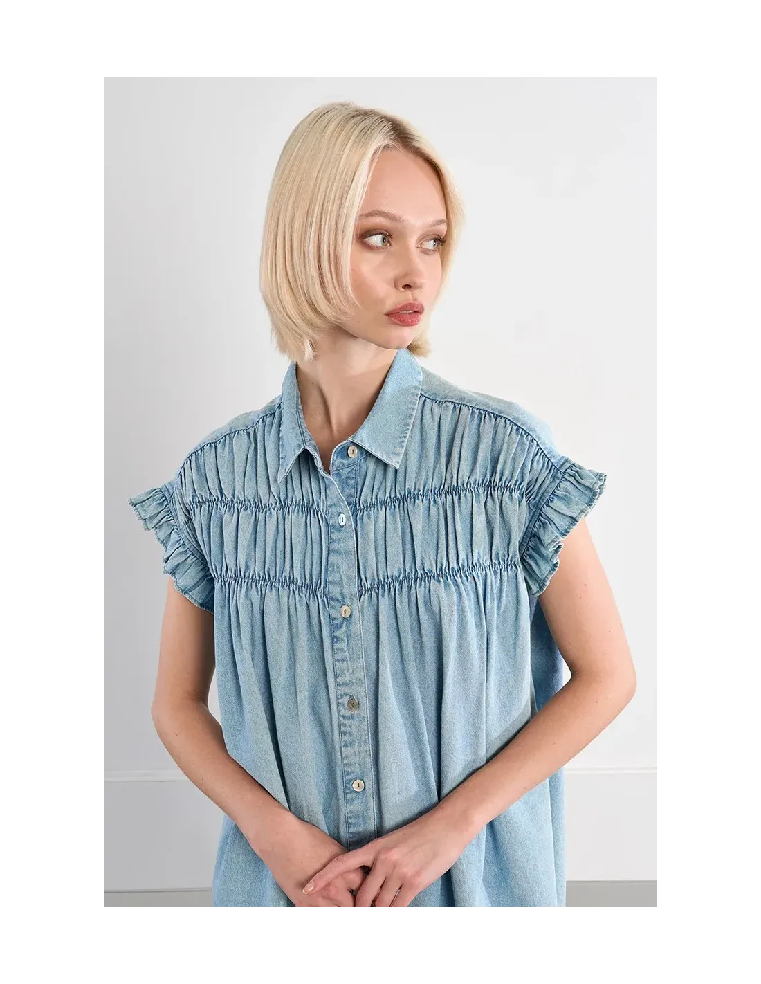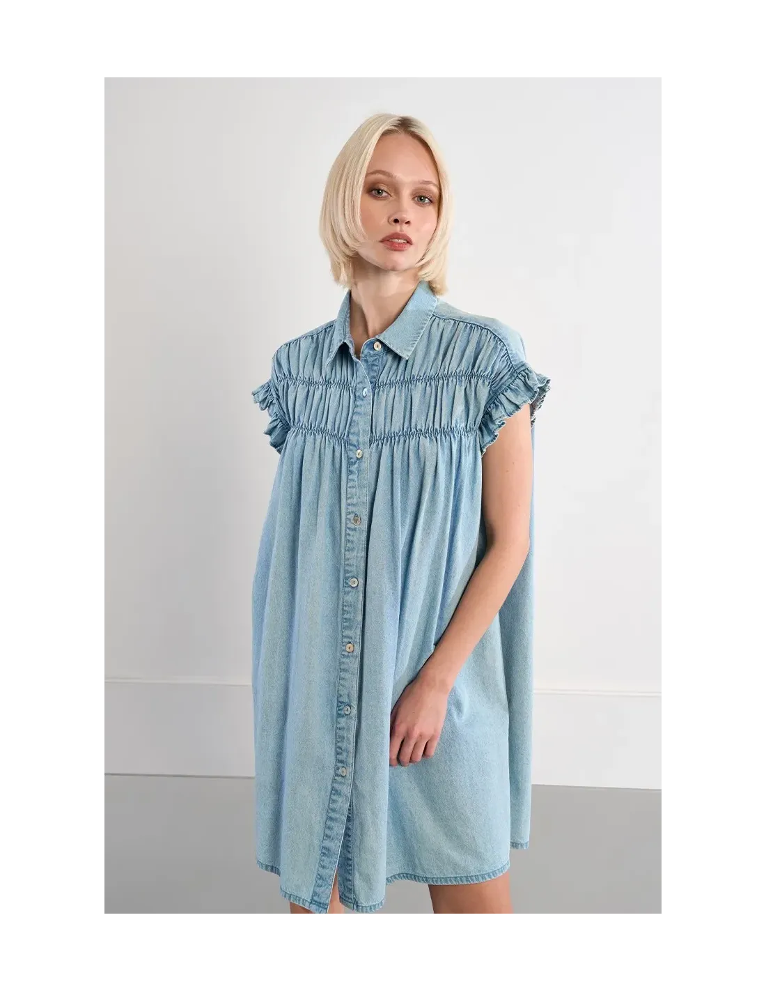 Robe smockée en coton, effet denim