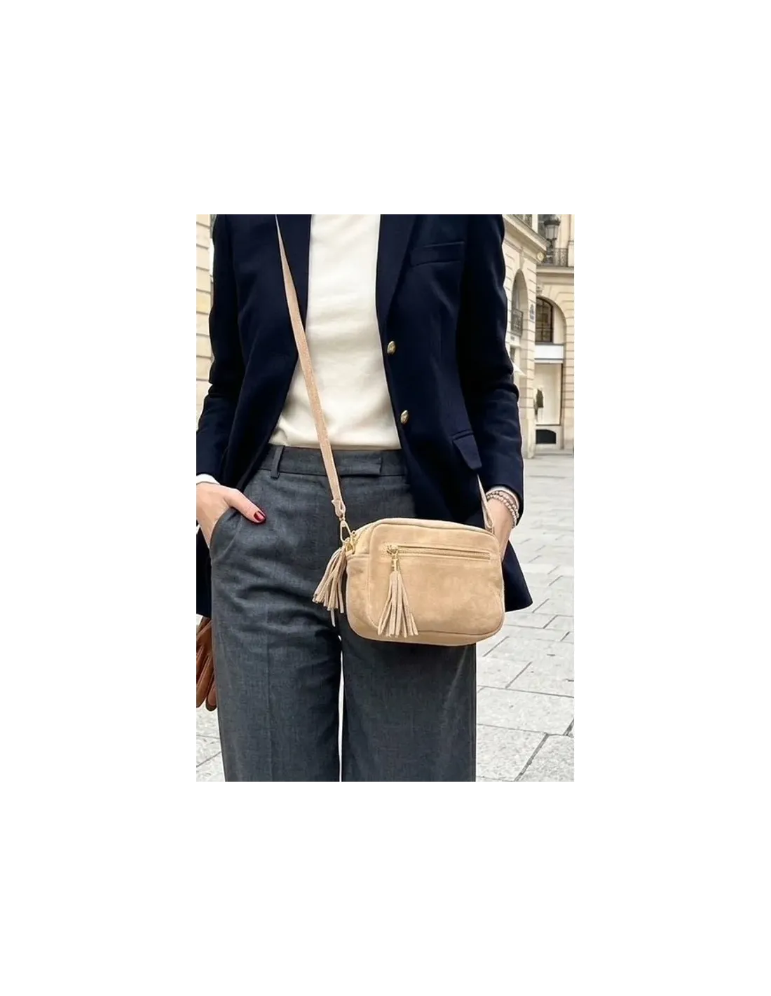 Petit sac à bandoulière en daim, une poche à l'extérieur, une poche à l'intérieur, bandoulière amovible et réglable inclus, (imperméabilisations conseillées)