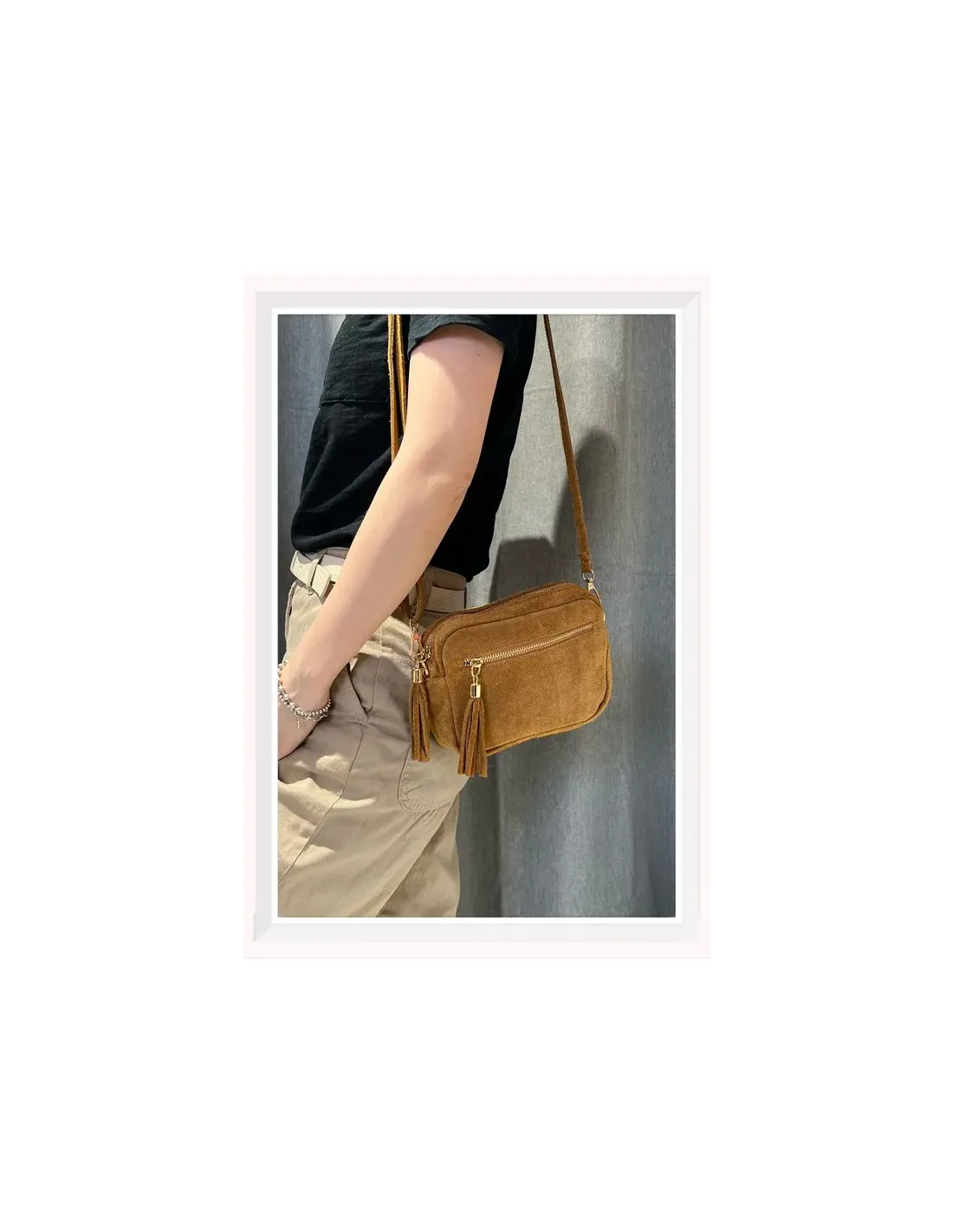 Petit sac à bandoulière en daim, une poche à l'extérieur, une poche à l'intérieur, bandoulière amovible et réglable inclus, (imperméabilisations conseillées)
