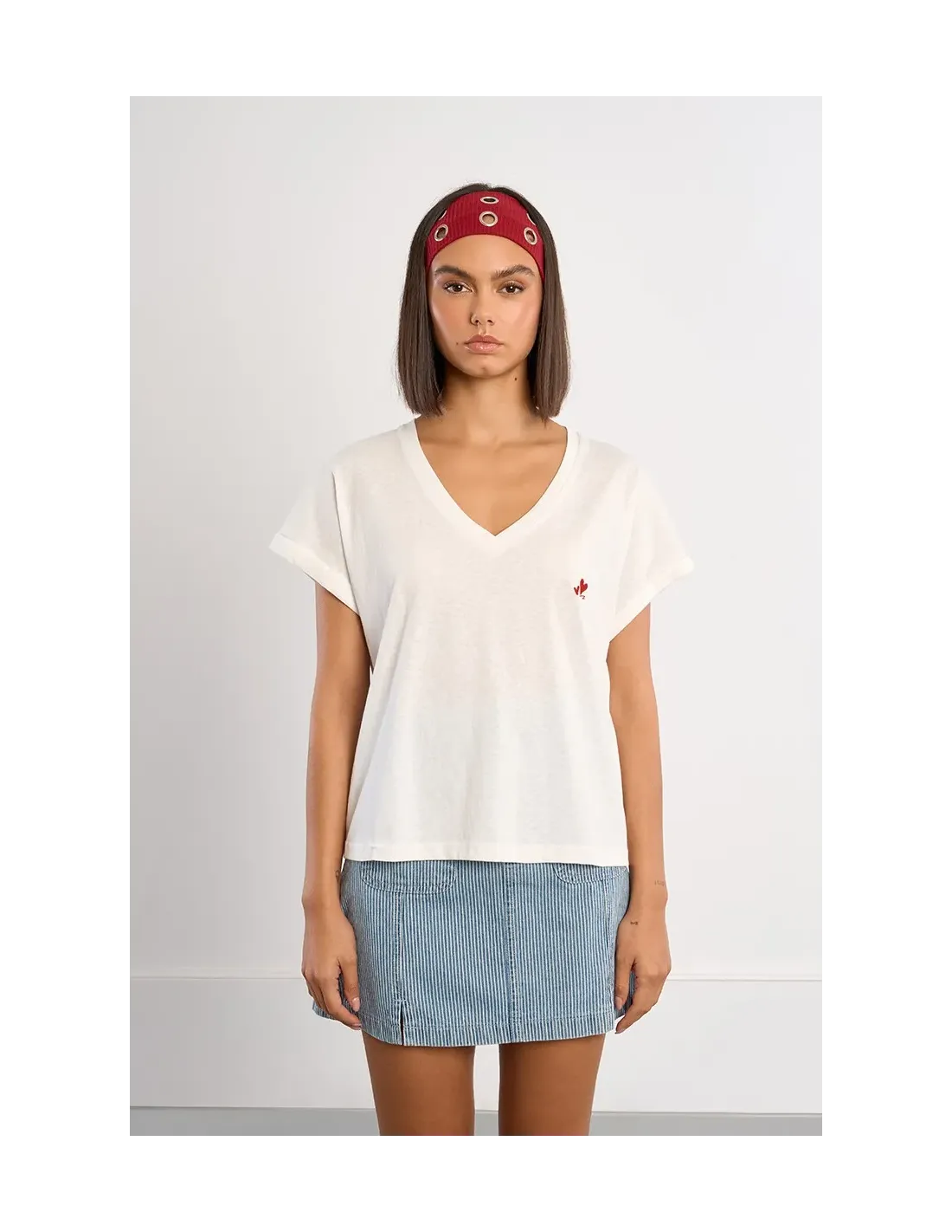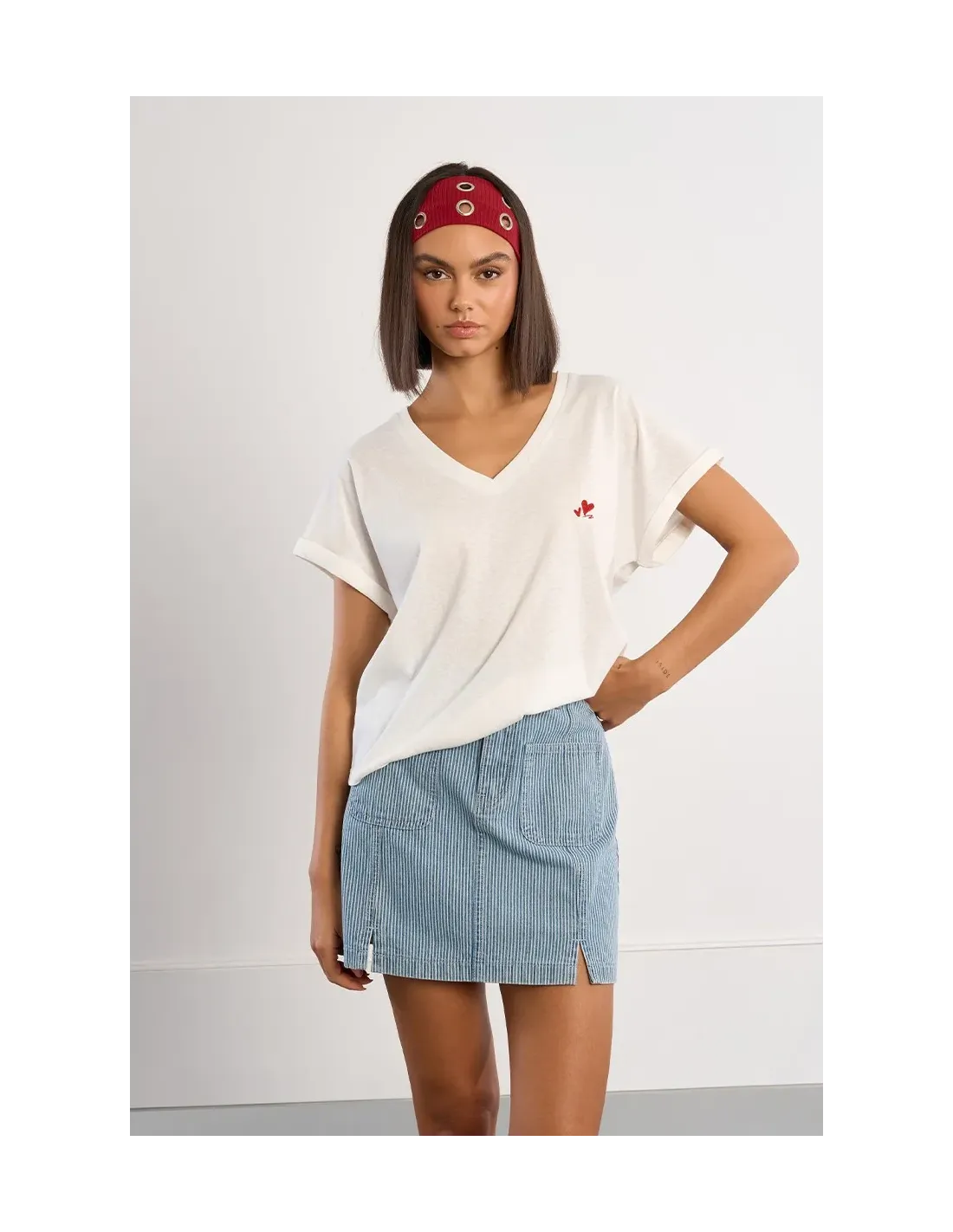 T-shirt basique avec broderies cœurs